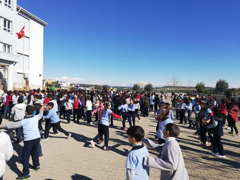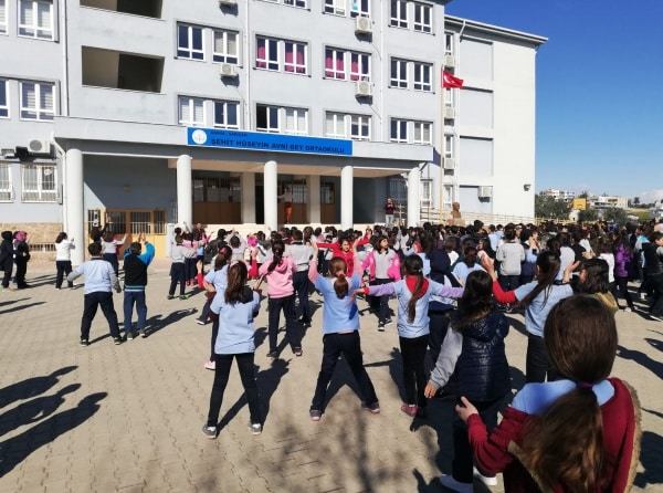 Beslenme Dostu Okullar Projesi kapsamında Okul Sağlığı Yönetimi Ekibi öncülüğünde okulumuzda her gün bir teneffüs müzik eşliğinde sağlıklı yaşam sporu yapılmaktadır. Öğrenciler her gün sağlıklı yaşam teneffüsünü sabırsızlıkla bekliyor ve sporu büyük bir ilgiyle yapıyor.